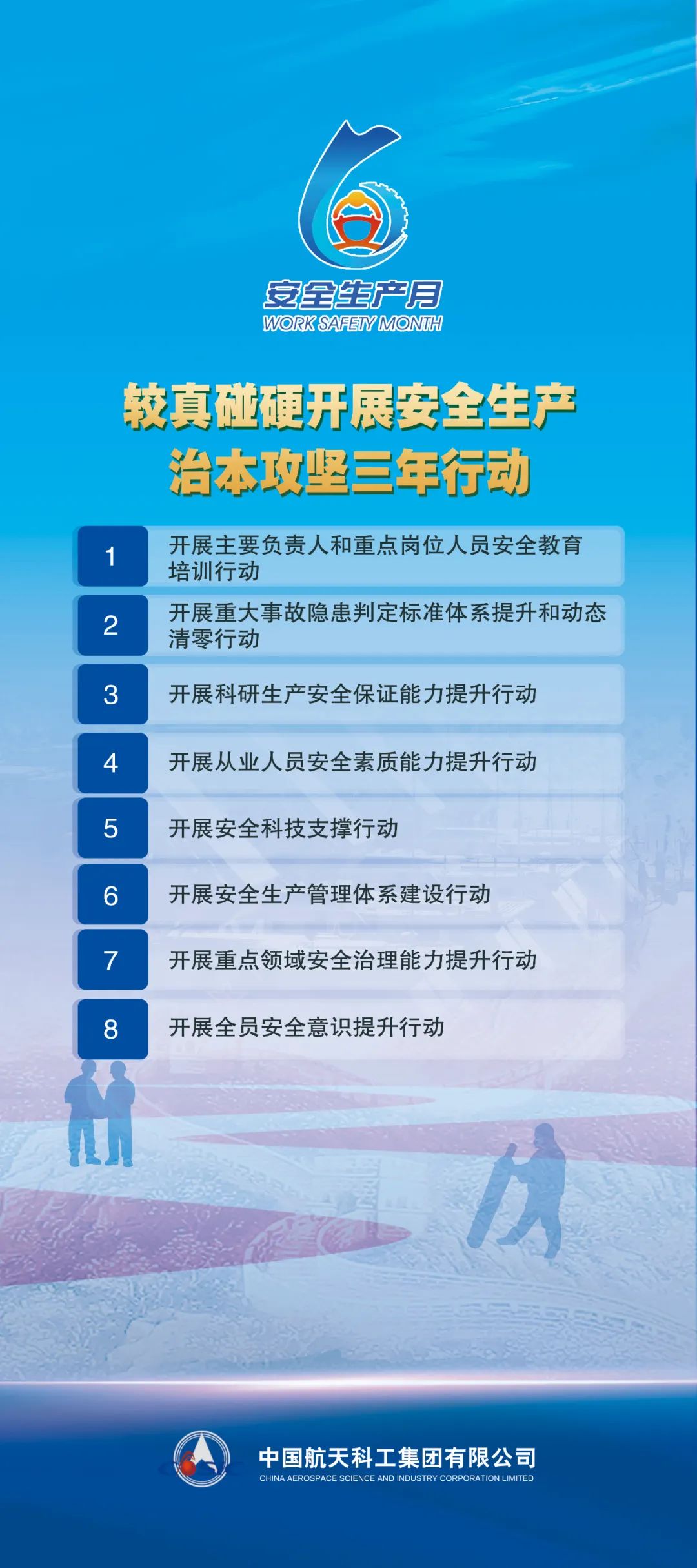 今年6月是第24個全國“安全生產月”,主題為“人人講安全、個個會應急——查找身邊安全隱患”,6月16日為全國“安全宣傳咨詢日”。近日,中國航天科工集團有限公司印發通知,對在全系統開展好2025年全國“安全生產月”活動作出安排部署。