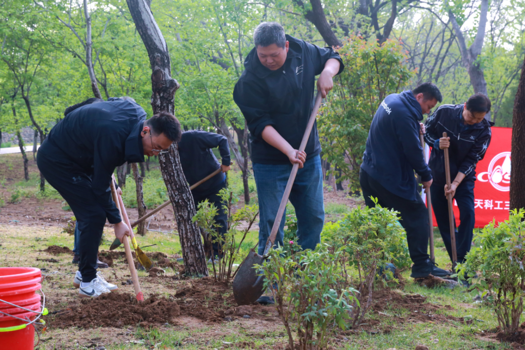植樹(shù)現(xiàn)場(chǎng),春和景明,一片繁忙有序的勞動(dòng)景象。大家分工協(xié)作,默契配合,揮鍬鏟土、培土圍堰、提桶澆水,種下海棠、山楂、牡丹等樹(shù)苗。在和煦的春風(fēng)中,一株株樹(shù)苗錯(cuò)落有致地挺立著,展現(xiàn)出勃勃生機(jī)。